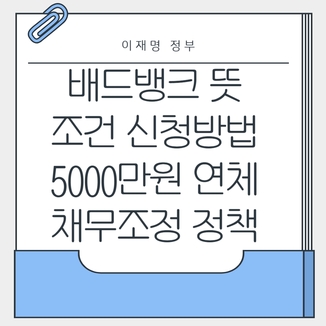 2025년 이재명 정부가 시행하는 '배드뱅크' 제도는 장기 연체자와 취약계층의 채무 부담을 대폭 줄여줄 예정이에요. 여기서 배드뱅크(Bad Bank)는 은행의 부실채권을 전문적으로 사들여 관리하는 기관을 뜻합니다.