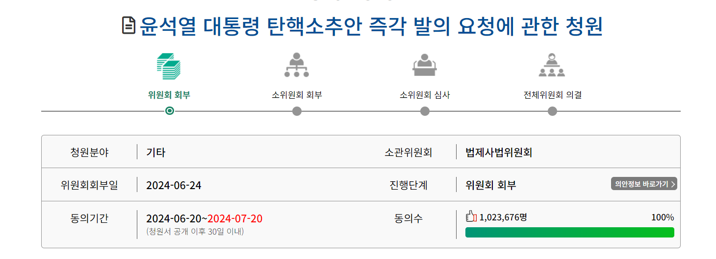 윤석열 대통령의 탄핵을 요구하는 국회 청원에 100만 명이 넘는 국민이 동의한 것으로 나타났습니다. 윤석열 대통령 탄핵 청원 관련 정보가 궁금하다면 이 글 모두 읽어주시길 바랍니다. 이번 포스팅을 통해서 윤석열 대통령 탄핵 청원 홈페이지 사이트 주소 링크 알아보도록 하겠습니다.